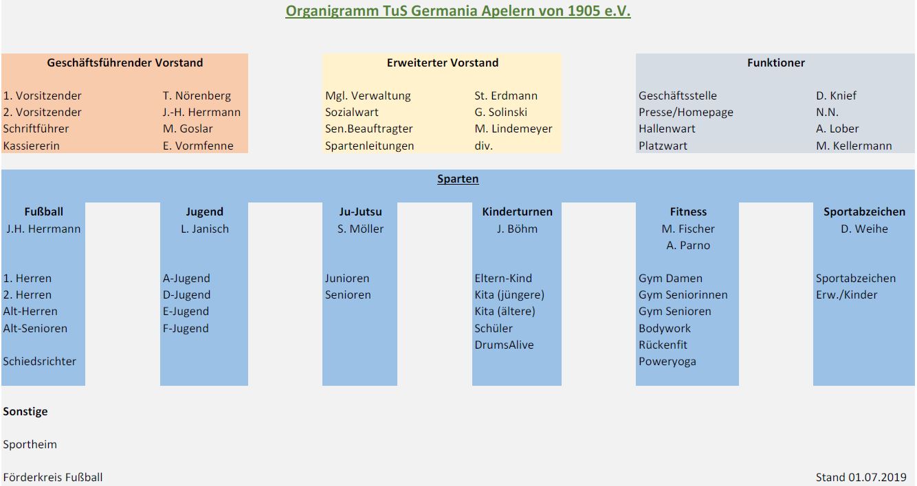 Der TuS Germania Apelern ist im Vereinsregister des Amtsgerichts Stadthagen VR 470 eingetragen.